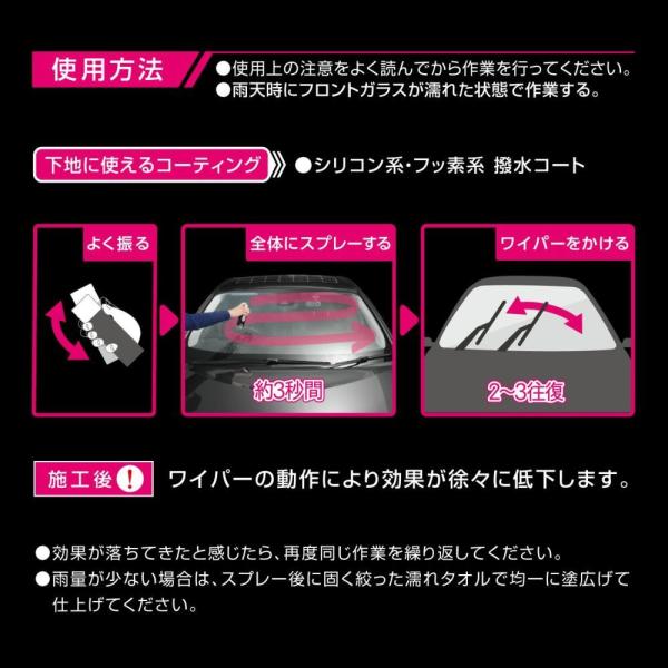 すでにシリコン系・フッ素系の撥水コートを塗っているフロントガラスでも、コーティングの上から重ねて施工できます。