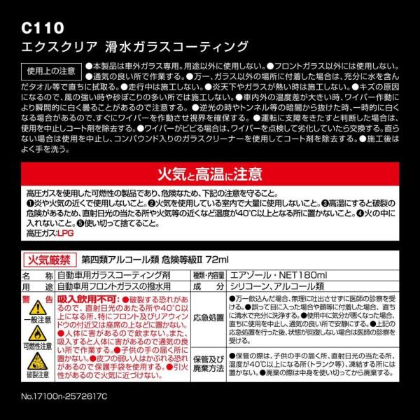 驚異の水滑り!見やすさ カーメイト C110 エクスクリア 滑水ガラスコーティング 車 フロントガラス 雨対策 滑水 かっすい スプレー カー用品