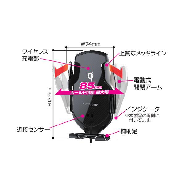 カシムラ KW-12 Qi対応 ワイヤレス充電器自動開閉ホルダー エアコン取付 近接センサー 電動モーター内蔵 車載スマホホルダー ハンズフリー用品 KW12