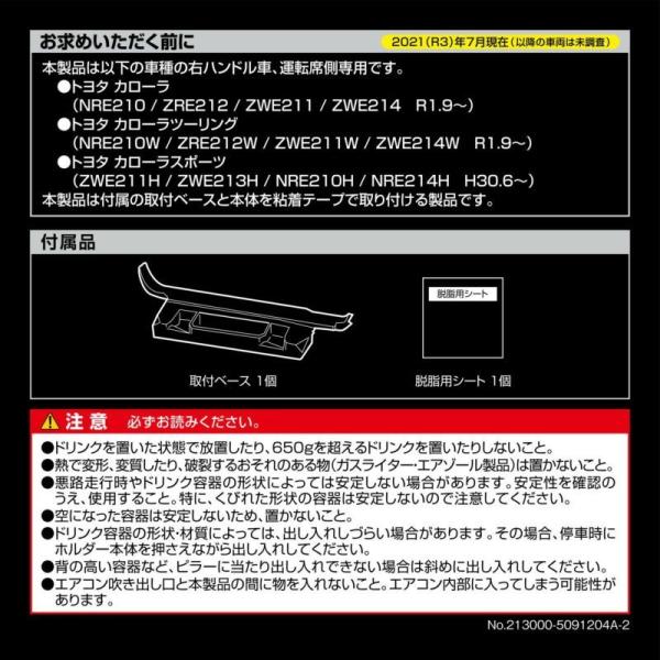 トヨタ カローラ(R1.9〜)/カローラツーリング(R1.9〜)/カローラスポーツ (H.30.9〜)専用設計・専用デザインの運転席用ドリンクホルダー