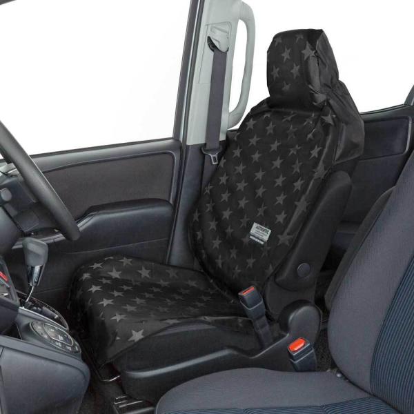 ボンフォーム 4046-10BK ファインスター汎用シートカバー ブラック+グレー星柄 防水シートカバー前席用 4046-10-BK