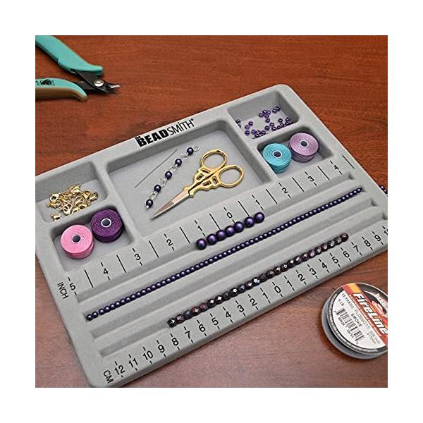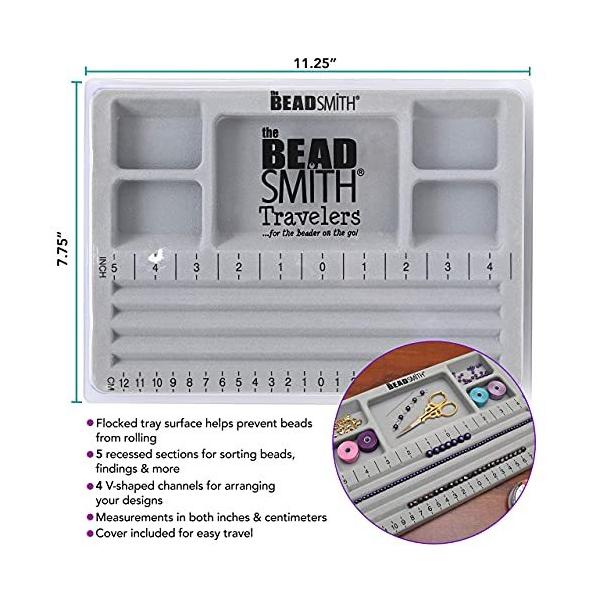BEADSMITH 旅行用ミニビーズデザインボード グレイ フロック加工 蓋付き 7.75×11.25インチ (約19.7cm×28.6cm)