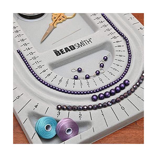 「商品情報」糸を通す前のデザインのレイアウト。 糸を切らずに、自由に何度でもビーズを組み合わせて、最高の作品を作りましょう。 創造性を発揮しましょう。作り終わってから気に入らなくなって、何度もネックレスを作り直す必要はもうありません。 このグレーフロック プラスチック製ビーズデザインボードは、ビーズをレイアウトするための 3 つのチャンネルと作業中のビーズや部品を整理できる 6 つのコンパートメントが付属します。 チャンネルはインチとセンチメートルでマークされています。「主な仕様」数量: 1 x ビーズボード。