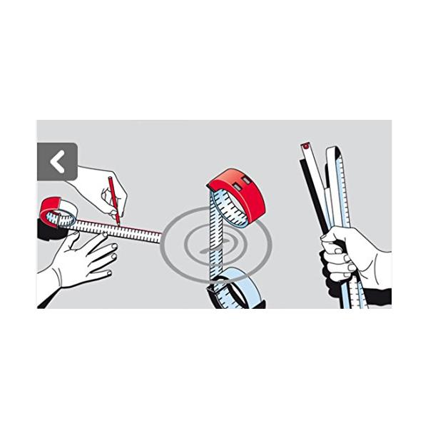 ドイツの計測機器専門メーカーのBMIのメジャー。 ストッパーを押せばメジャーが出て、ストッパーをはなすと固定する構造で、片手がふさがっているときにも計測が出来ます。また、耐水性のステンレス製のメジャーは折り曲げにも強く、立体的なものの計測にも自由自在に使えます。平らな台の上では独立するのでそのまま定規のように線を引くことも可能です。ベルトにぶらさげるように装着できるホルダー(プラスチック製赤色)が付属しています。※パッケージに輸送時の破損がみられる場合がございます。※複数ご購入の場合、パッケージが異なる場合がございます。「主な仕様」2m計測 7cm×5.8cm×1.2cm Made in Germany