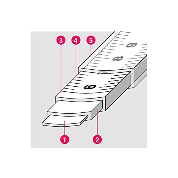 4つの機能を持つ最も用途の広いテープ:縦方向測定、内部測定、半径描画(直径6 mまで)、水平調整ウィンドウの目盛りは上下逆さまに表示されません(読み取りエラーなし)スウィングアウトアームに統合されたスチールスタイラスにより、直径6 mまでの半径を描くことができます。「主な仕様」4つの機能を持つ最も用途の広いテープ