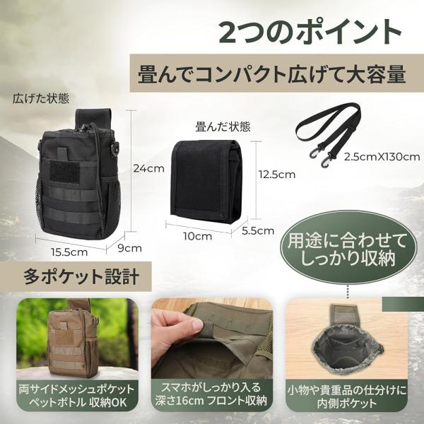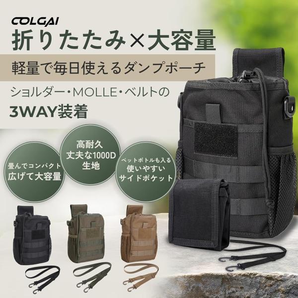 COLGAI ダンプポーチ 折りたたみ式 1000Dナイロン ショルダー付き 3WAY仕様 MOLLE メッシュポケット ミリタリー ブラック