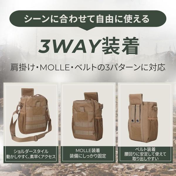 ? 【3WAYの使い方に対応】 肩掛け・MOLLE固定・ベルト掛けの3WAY仕様。シーンに合わせて自由に使える万能設計。