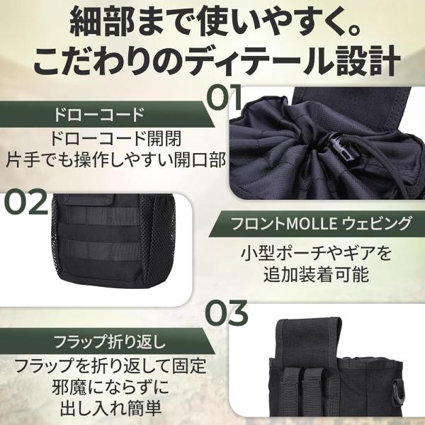 ? 【MOLLEシステム対応】 バックパック・タクティカルベスト・ベルトへしっかり固定。サバゲー装備との相性抜群。