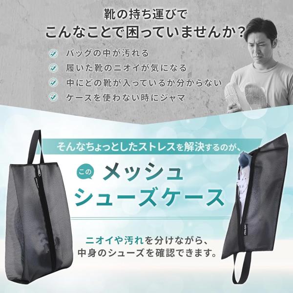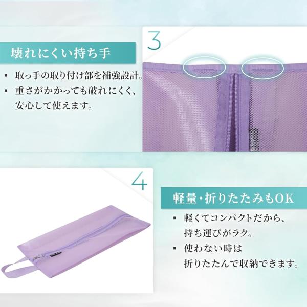 ?【メッシュ×TPUの2層構造で丈夫&清潔】 外側はポリエステルメッシュ、内側はTPUの2層構造。汚れや水分を閉じ込め、バッグの中を清潔に保ちます。薄く柔らかいTPUで靴の出し入れもスムーズ。(生地は水を通しませんが、防水ではありません。)