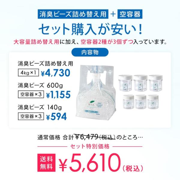 【消臭剤 消臭ビーズ 詰め替え 4.0kg 空容器セット】