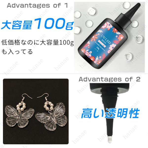 uv182#uvレジン液 大容量 日本国内当日発送 レジン液 ハード 透明 内容量100g レジンクラフト ハンドメイド UV-LED対応 手芸 レジン用品 手作り クリア 高粘度
