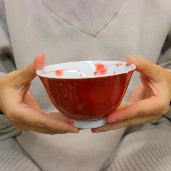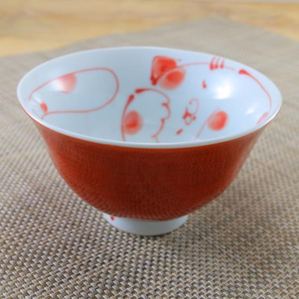 茶碗 有田焼 波佐見焼 内ネコ茶碗(赤) 猫 招き猫 可愛い|和食器 陶器 三階菱 オリジナル