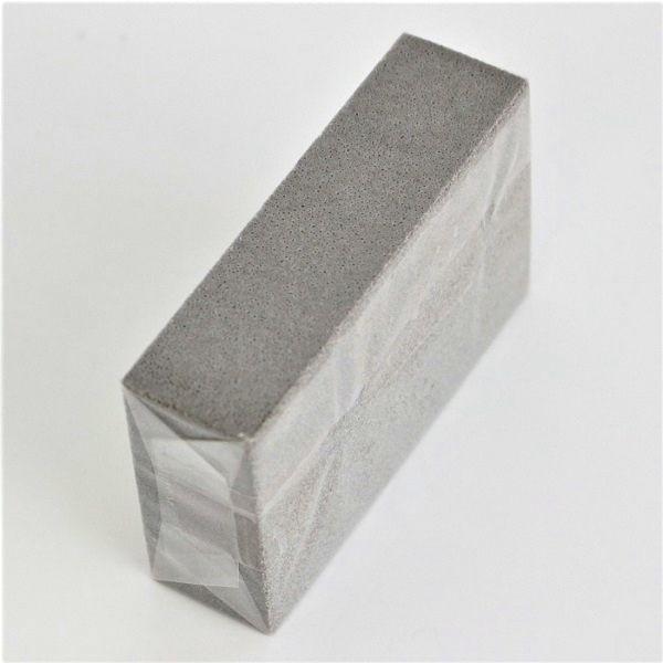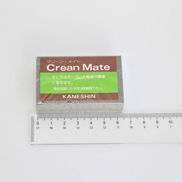 クリーンメイトに植物性油を少量付けて消しゴムを使う要領で刃物や金属の汚れ、樹液汚れや錆部分を擦って下さい。