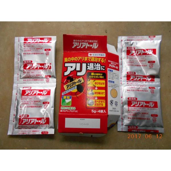 アリに殺虫成分を含ませた餌を持ち帰り、食べさせることにより巣の中のアリまで退治します。