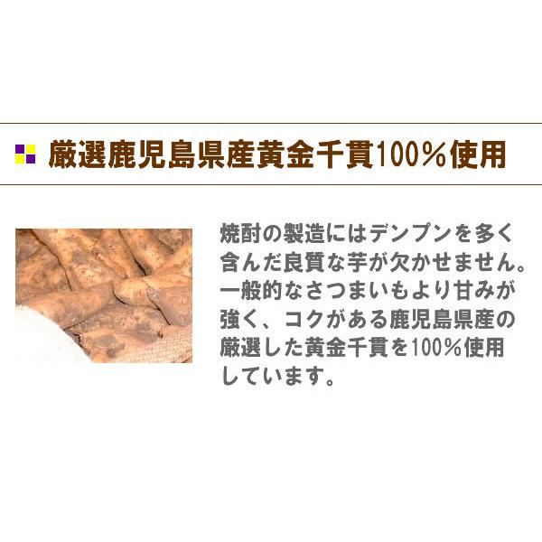 厳選した鹿児島県産芋焼酎を黒麹で仕込み、常圧蒸留でじっくりと造られました。更に三分濾過で、原料芋本来の旨味を残し、希少な初垂れ(はなたれ)の新酒をブレンドして造られた旨みたっぷりの芋焼酎です。