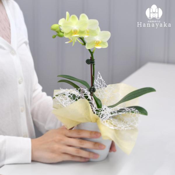 胡蝶蘭 ※現在1輪開花〜 カララL(ミニミディ) 2本立ち ラッピング、カード無料!鉢花 ギフト 誕生日 プレゼント 開店祝い お祝い お供え※KG