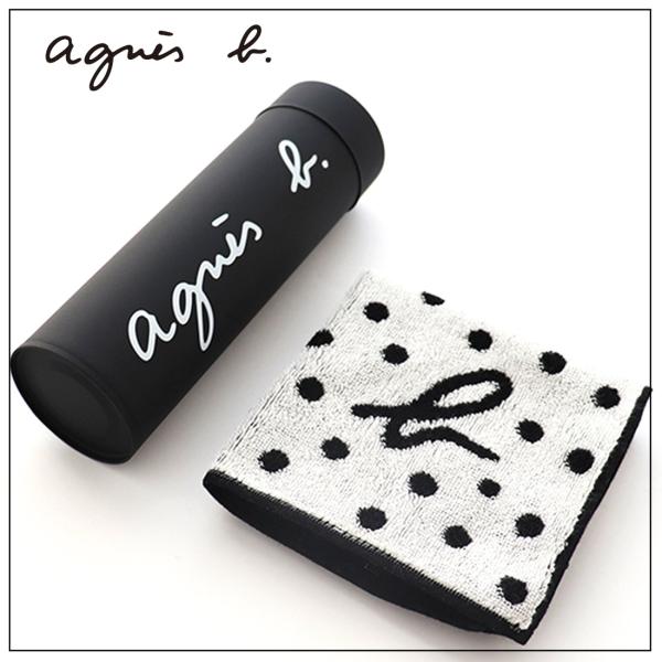 アニエスベー タオルハンカチ ドット&b.ロゴ(筒形缶パッケージ入り ロゴ) ブラック