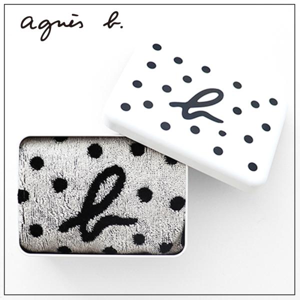 アニエスベー タオルハンカチ ドット&b.ロゴ(缶パッケージ入り ロゴ) ホワイト