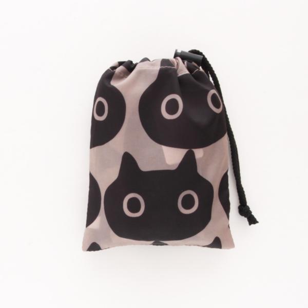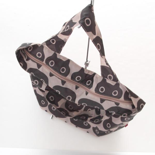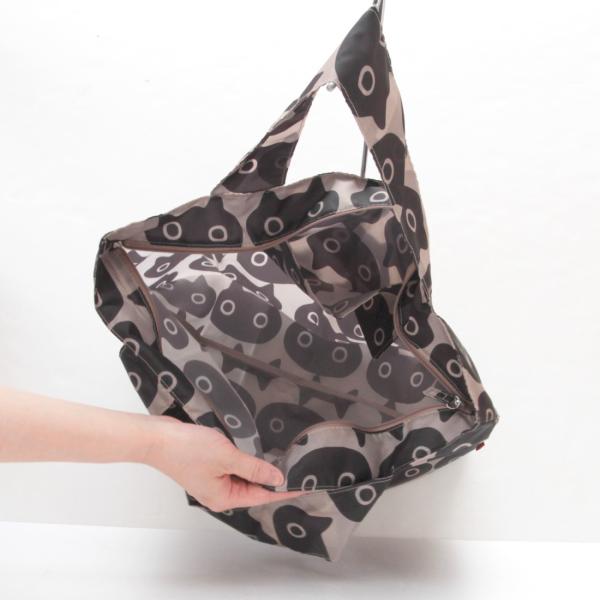 アツコマタノ エコバッグ/マイバッグ 巾着付 おしくら MEME 1501 ベージュ |折りたたみ コンパクト ねこグッズ サブバッグ ファスナー付き