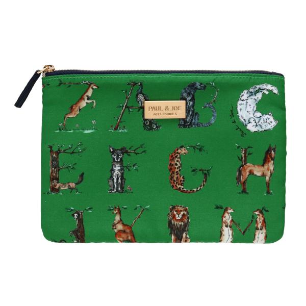 ポール&ジョー アクセソワ 天ファスナーポーチ 動物アルファベット グリーン