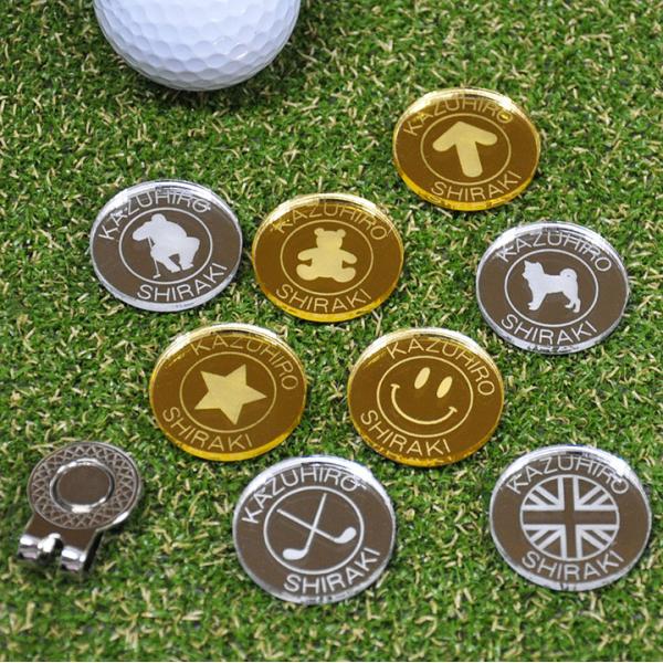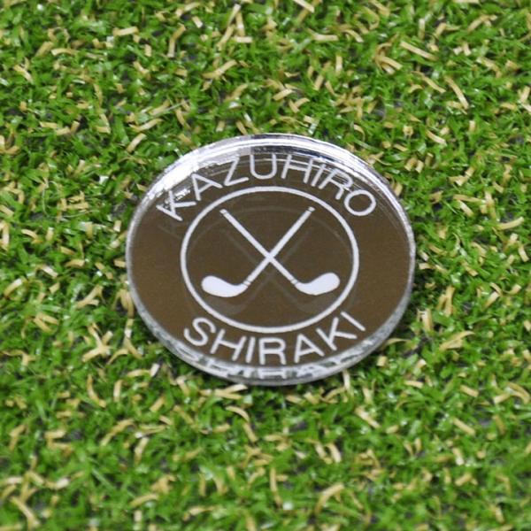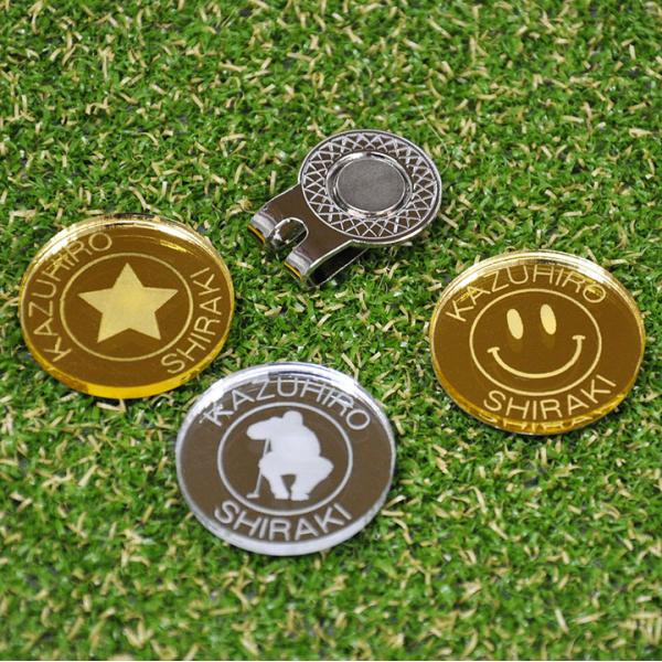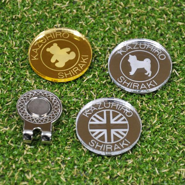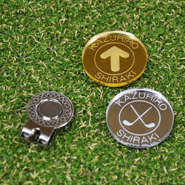 ゴルフマーカー 30mm ミラーアクリル 名入れ 2色展開 50デザイン マグネット入ハットクリップ付 コンペ 景品