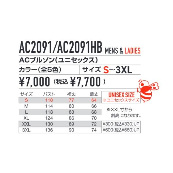 在庫あり BURTLE バートル 空調服 AC長袖ブルゾン(ユニセックス)AC2091HB 5色 S〜XL ハイバックファンタイプ 2026モデル