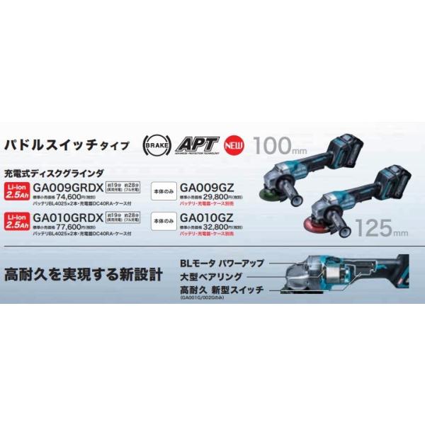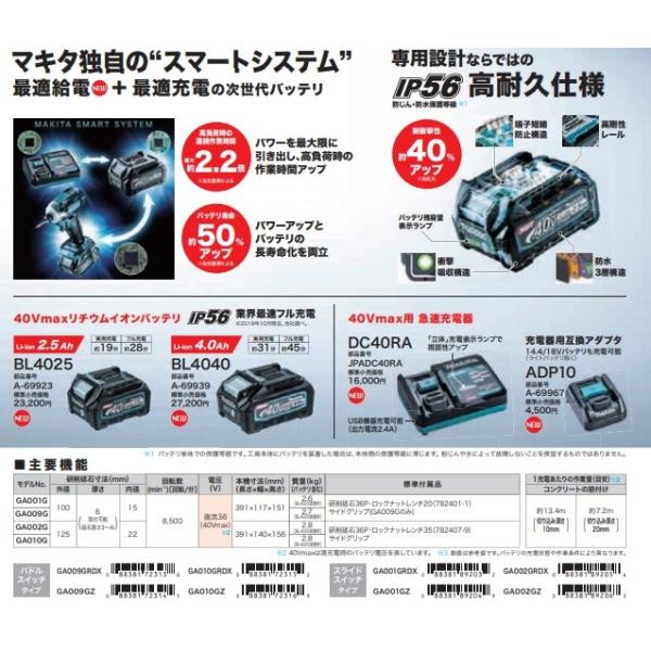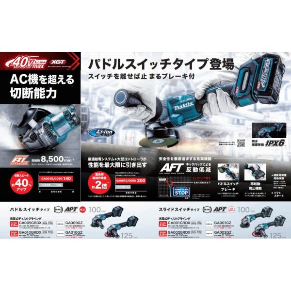 makita マキタ 40Vmax充電式ディスクグラインダ(スライドスイッチタイプ)100mm GA009GZ 本体のみ ※電池・充電器・ケース別売