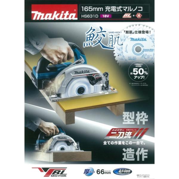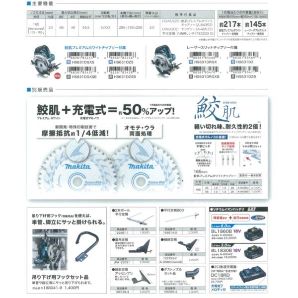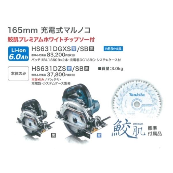 makita マキタ 18V 165mm充電式丸のこ(マルノコ)HS631DGXS 6.0Ahバッテリ2本+充電器+ケース付 無線連動なし
