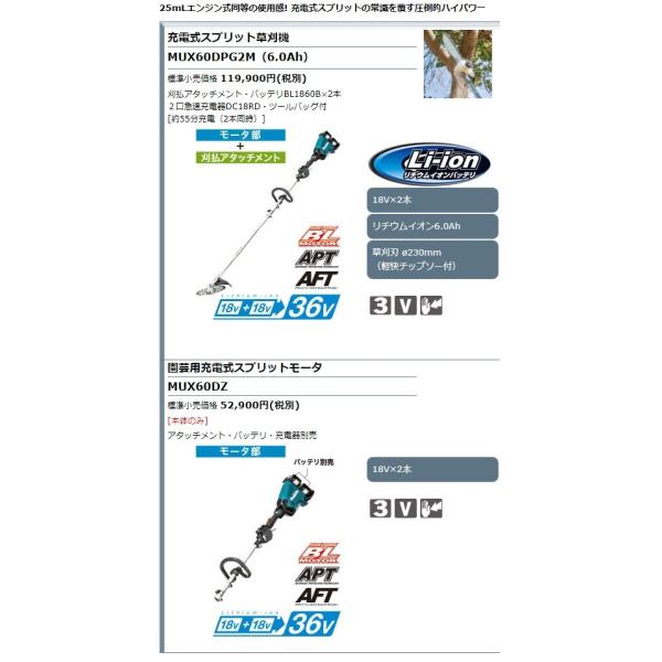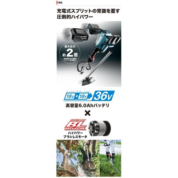 makita マキタ 18+18⇒36V充電式スプリット草刈機 ループハンドル MUX60DPG2M 刈払アタッチメント+バッテリー2本+充電器+バッグ付