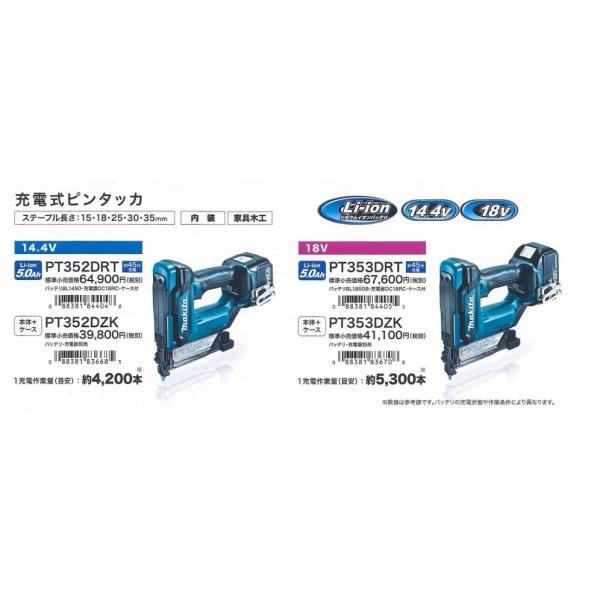 makita マキタ 18V充電式ピンタッカ PT353DZK 本体+ケース(電池・充電器別売)