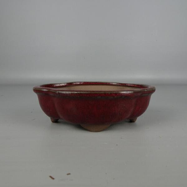 盆栽鉢 ゆうき祥石 小型 長辺 約 12.5cm 丸鉢 縁付 下帯 釉薬 現品 新品