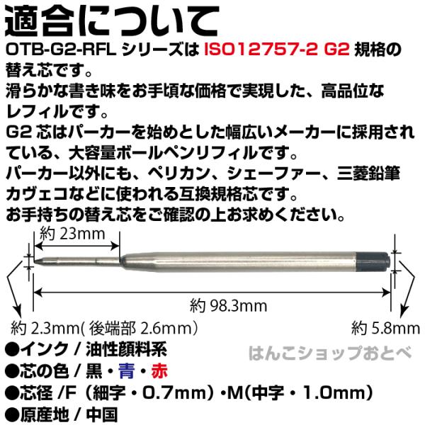 パーカー互換リフィル(ヨーロッパ規格ISO 12757-2 G2規格)ですので、G2規格のボールペンに幅広くご利用いただけます。