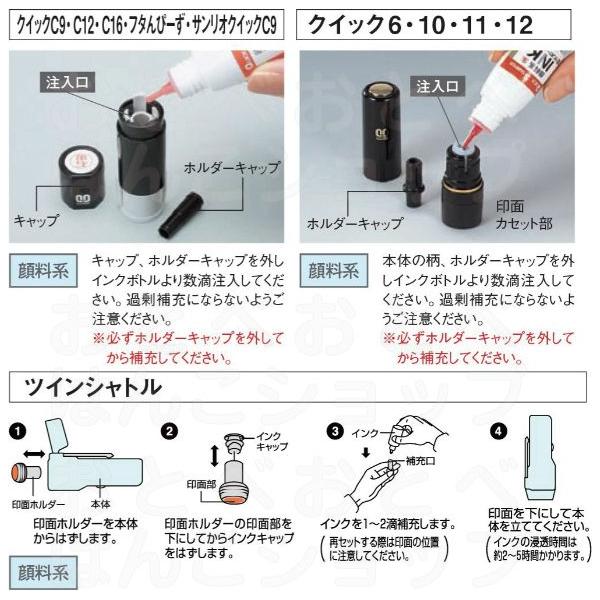 サンビー クイックインク 10ml 顔料系 朱・赤・青・黒・緑・紫 クイックスタンパー プチコール インク インキ 補充 補充用
