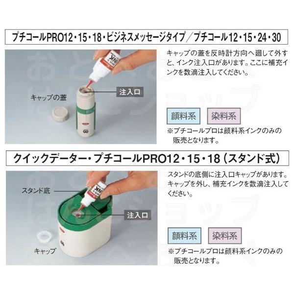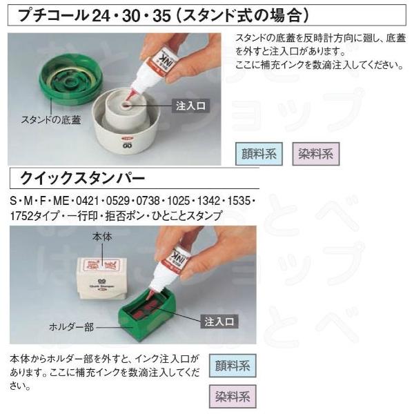 サンビーのクイックスタンパーやプチコールなど、浸透印シリーズの補充インクです。(顔料系)
