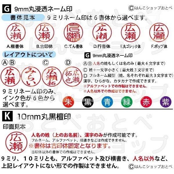 ●印面サイズ/ネーム印9ミリ、黒檀認印10ミリ