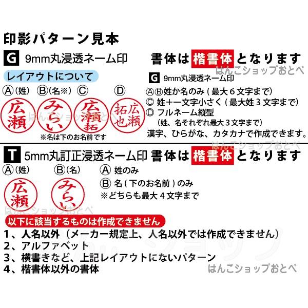 ●印面パターン/ネーム印4パターン、訂正印2パターン