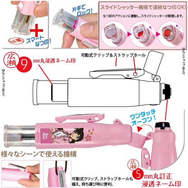 ネーム印、訂正印側ともにキャップレスのため、キャップを無くす心配がなくなりました!