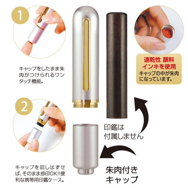 キャップに朱肉が内蔵されているので、ワンタッチで印鑑に朱肉がついて