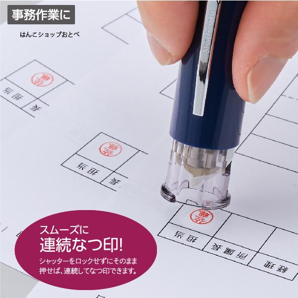 ワンタッチで捺印できるキャップレスの印鑑「キャップレス6」です。