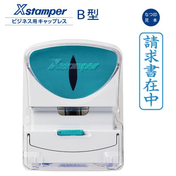 シャチハタ ビジネス用 キャップレス B型 縦 藍色 「請求書在中」枠付き