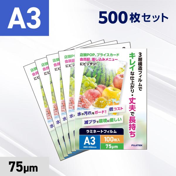 ラミネートフィルム A3サイズ(75ミクロン)100枚