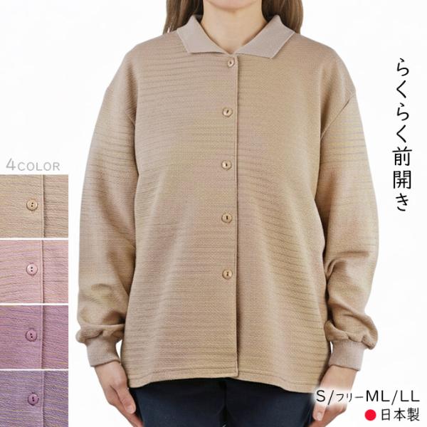 裏起毛 前開きポロシャツ 長袖 暖か 綿混 細ボーダー 日本製 S/ML/LL シニア レディース 秋冬 あったか カーディガン 普段着 婦人服 ギフト 60代 70代 80代