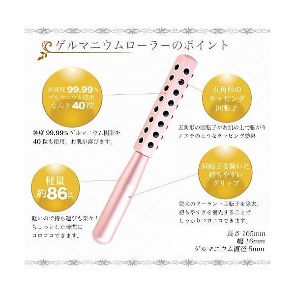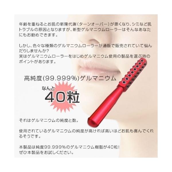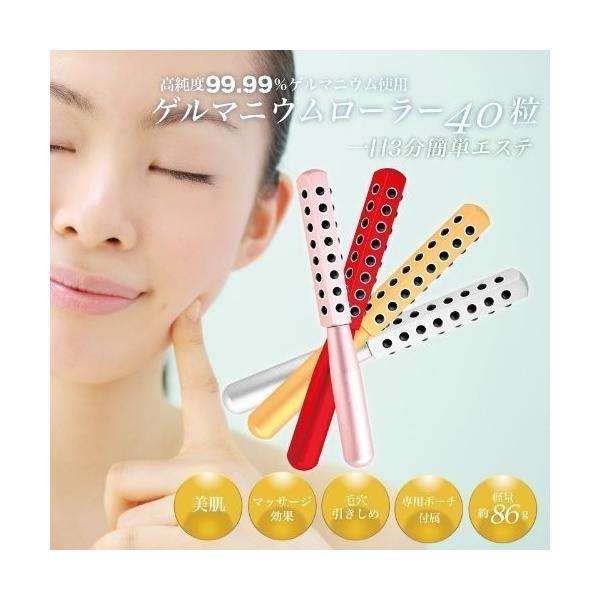 ゲルマローラー フェイスローラー ほうれい線 美肌 ハリ ツヤ 純度99% ゲルマニウム粒子40粒 額 ほほ 目じり あご〜首すじ デコルテ 二の腕 手の甲 ゴールド