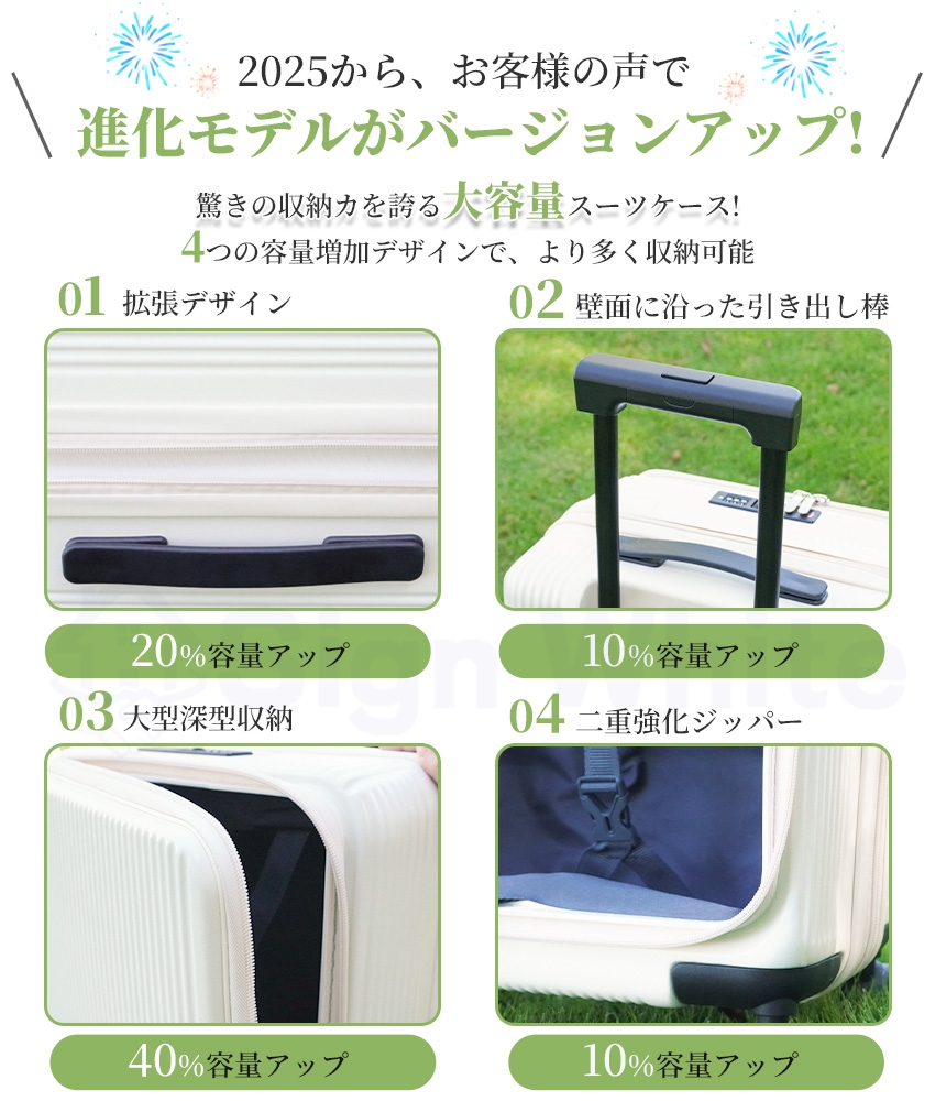スーツケース フロントオープン 横開き 拡張機能