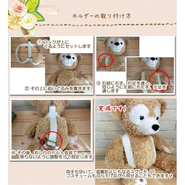 ※※抱っこ紐には別売りの抱っこ紐専用ベルト(肩掛け紐)が必要です。肩掛けベルトはダッフィーSサイズ用と同じものでご使用頂けます。※※