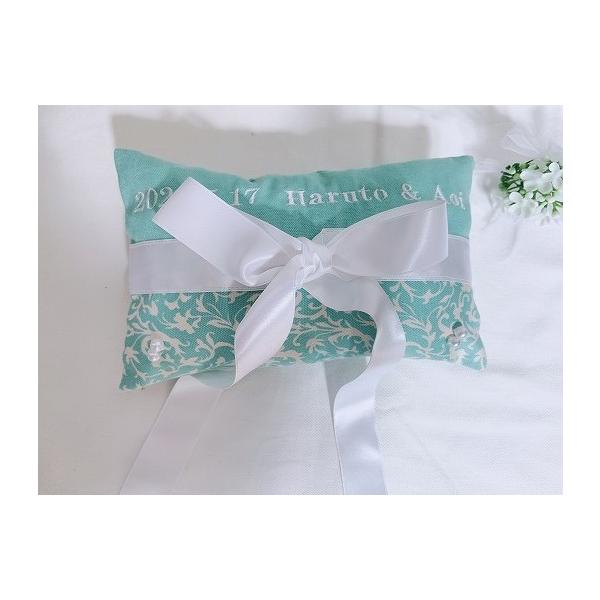 記念日とお名前を刺繍した、世界に一つだけの大切なリングピローをお作りします。