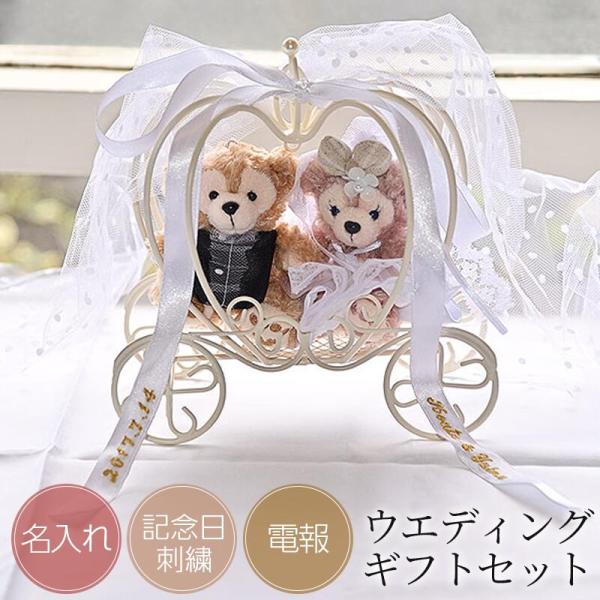 ダッフィーシェリーメイ 結婚祝い 結婚式 プロポーズ 記念日 かぼちゃの馬車 リボン刺繍 ウエディング ギフト プレゼント ぬいぐるみセット gift-164