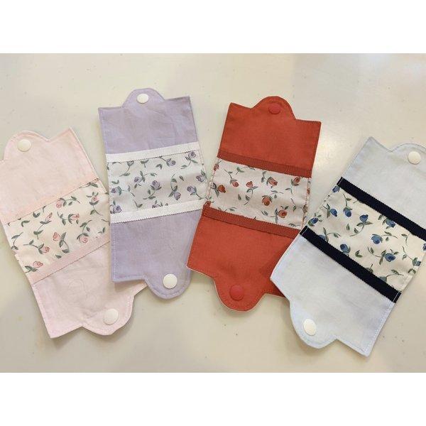 マスクを入れてマスクケースとしてもマスク置きとしてもお使いいただけます。リバティ フローティングフローラ使用! ゴム部分を机の横にかけることができるので学校の給食の時にもお使いいただけます!4色からお選びください。