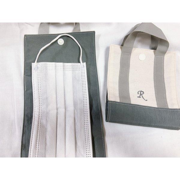 トートバッグ型マスクケースになります。マスクを入れてマスクケースとしてもマスク置きとしてもお使いいただけます。机の横にかけることができるのでランチの時にバックのフックにかけたり机の横に置いたりと便利です。内側はナイロン製になりますので使用後はアルコール消毒をしていただけ清潔に保てます。