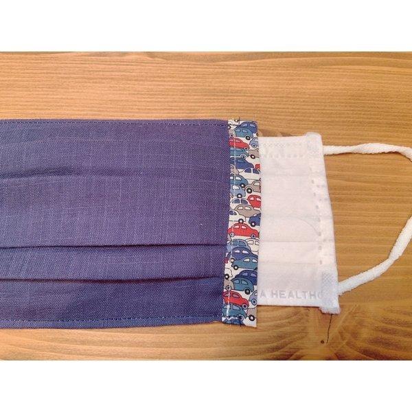 ゴムを外し、間に使い捨てマスク(サージカルマスク・不織布マスクなど)を入れてマスクカバーとしてもご使用いただけます。